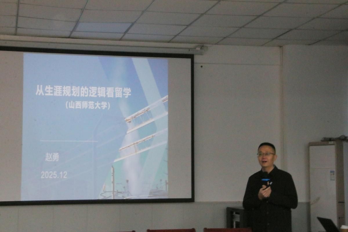 赵勇老师以“自我、环境、路径”三大关键词为核心切入点,系统阐释了国际交流的内在逻辑和基本框架。他从学习能力、性格特质等维度出发,引导同学们全面审视自身条件与留学规划的适配程度。他详细梳理了亚洲、欧洲和美洲等不同留学目的地的实际情况,为同学们提供了兼具地域特色与实用价值的参考,并围绕职业发展、资金筹备等关键问题,给出清晰可行的实施建议与指导。赵勇老师特别强调,留学规划应始终以“回国发展”为导向,以专业能力为纽带,立足中国视角,传递中国声音,让国际交流的经历成为求职就业的新优势。