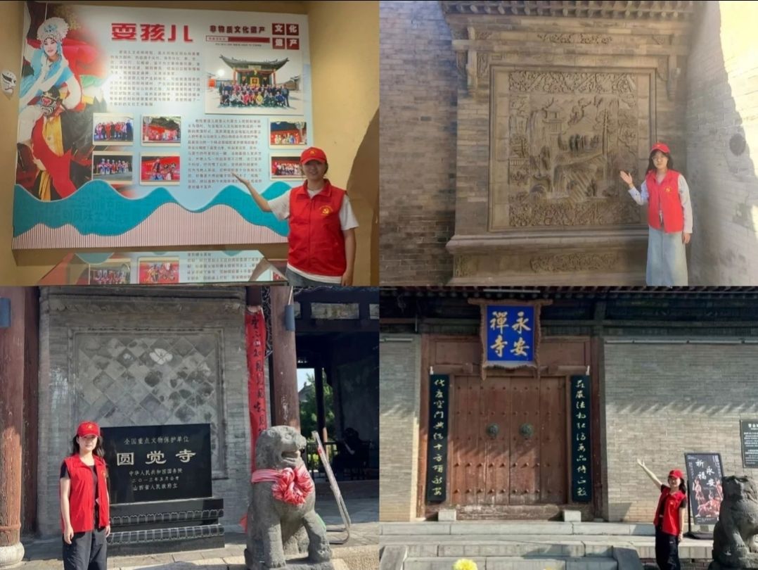他们前往贾家庄老院、王家大院、永安寺及文庙,用双语讲解砖雕里的非遗技艺、匾额背后的晋商往事和文庙承载的儒家文脉,去到“戏剧活化石”耍孩儿的发源地—阳和坡村,观赏传统唱腔曲谱与相关展品,让文物的千年底蕴与非遗的时代活力同频传递。团队成员赴狮脑山百团大战纪念馆,在追寻红色印迹中感悟革命先辈的奋斗精神,带着这份从红色历史中汲取的奋斗力量,他们走进平定县乡村振兴产业园,实地调研“企业+农户”的特色经营模式,探寻企业带动乡村发展的实际成效。