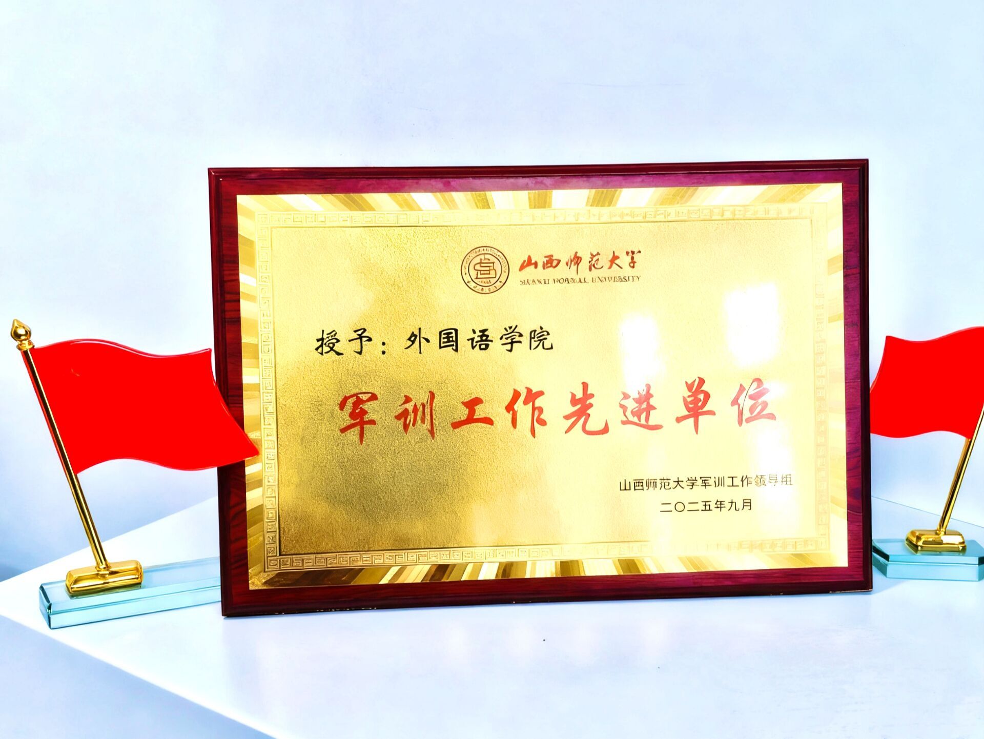 近日,山西师范大学2025级新生军训工作圆满结束。外国语学院在军训期间积极配合学校统筹安排,全力保障新生训练有序推进,凭借新生群体的优异表现与训练成效,成功获评学校“军训工作先进单位”称号。