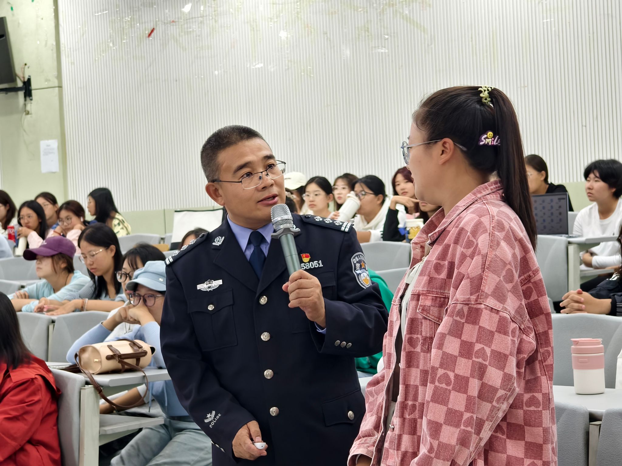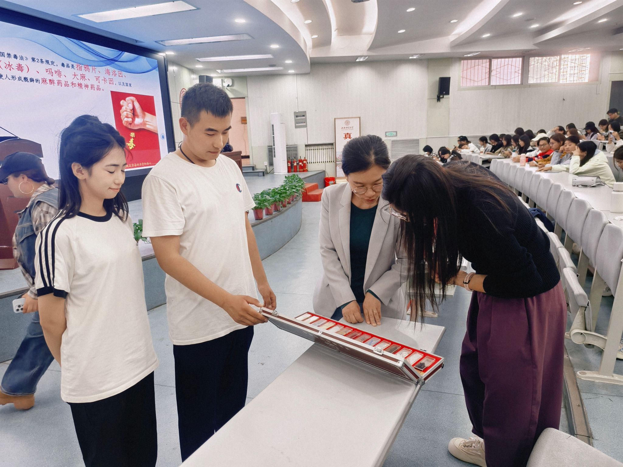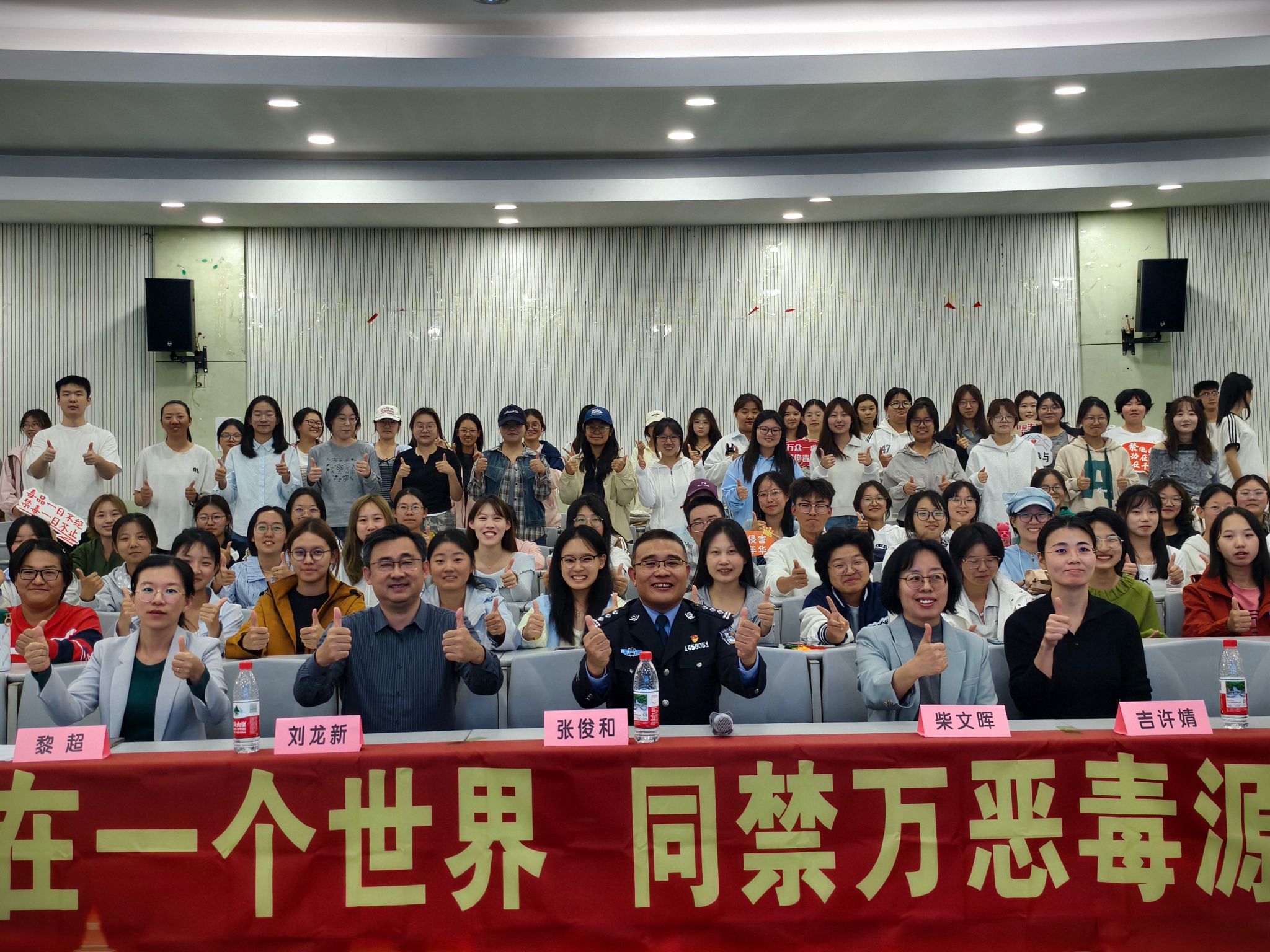 张俊和结合工作经验,从认清毒品的真相、当前的禁毒形势、了解毒品的危害、掌握拒毒的技巧四个方面,为同学们讲授毒品预防的相关知识。互动环节,同学们围绕新型毒品识别、毒品侵害应急处理等话题展开提问,张俊和耐心解答,现场交流热烈,大家纷纷表示收获颇丰。最后,全体参会人员肃立宣誓,表达了坚决远离毒品、共建无毒校园的决心。