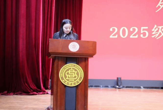新生见面会在肃穆的国歌声中拉开帷幕。黄远鹏代表全体师生员工向2025级新同学表示热烈欢迎,勉励同学们要坚定理想信念、夯实专业基础,争做德才兼备的高素质师范人才。随后,22级田雅帆等三位学生代表依次发言,她们既分享了成长实践中的感悟思考,也表达了对新学期的美好憧憬,传递出昂扬向上的青春宣言。教师代表吉许婧从教学实践出发,强调了在大学期间转变学习思维的重要性,指出应以探索式学习激发内生动力。最后,院长李楠寄语全体新生,希望大家保持探索热情与创造活力,在求学路上行稳致远,展现出外语人的精神锋芒。