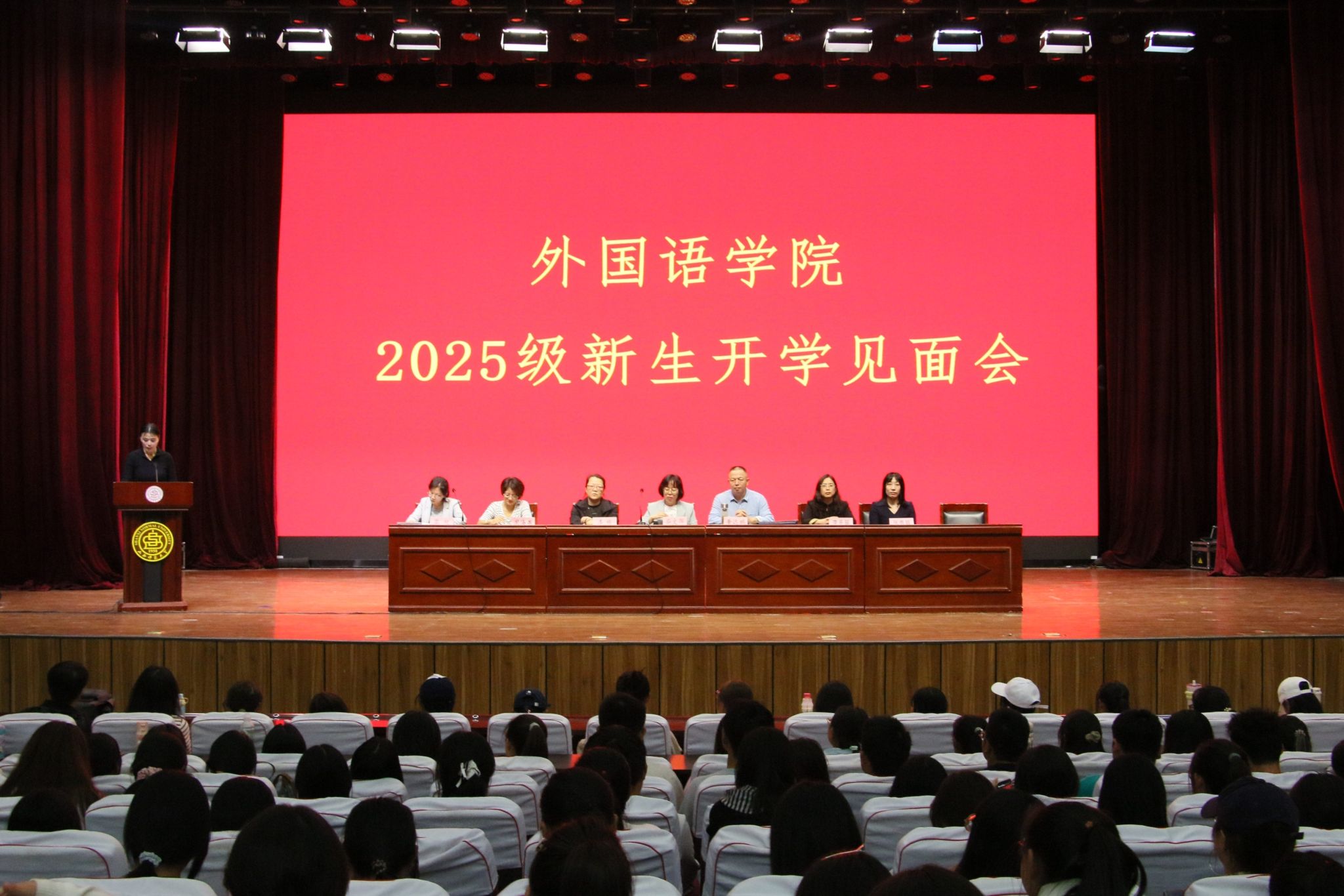 9月25日,外国语学院在南区科学会堂报告厅召开2025级新生见面会,院党委书记柴文晖、院长李楠、副院长黄远鹏、副院长周海燕、日语系主任李冬翠、日语系副主任张秀娟及新生辅导员出席。见面会由院团委书记黎超主持。