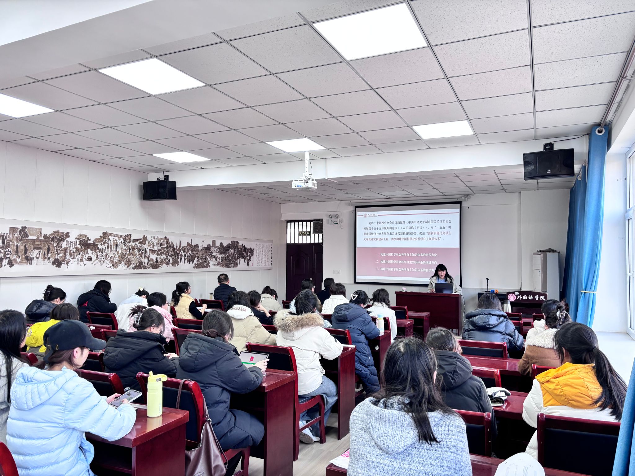 为深入学习贯彻党的二十届四中全会精神,进一步推动构建中国自主知识体系,外国语学院于1月14日邀请马克思主义学院党委书记乔瑞教授开展专题宣讲活动,学院党员干部、师生代表参加会议。