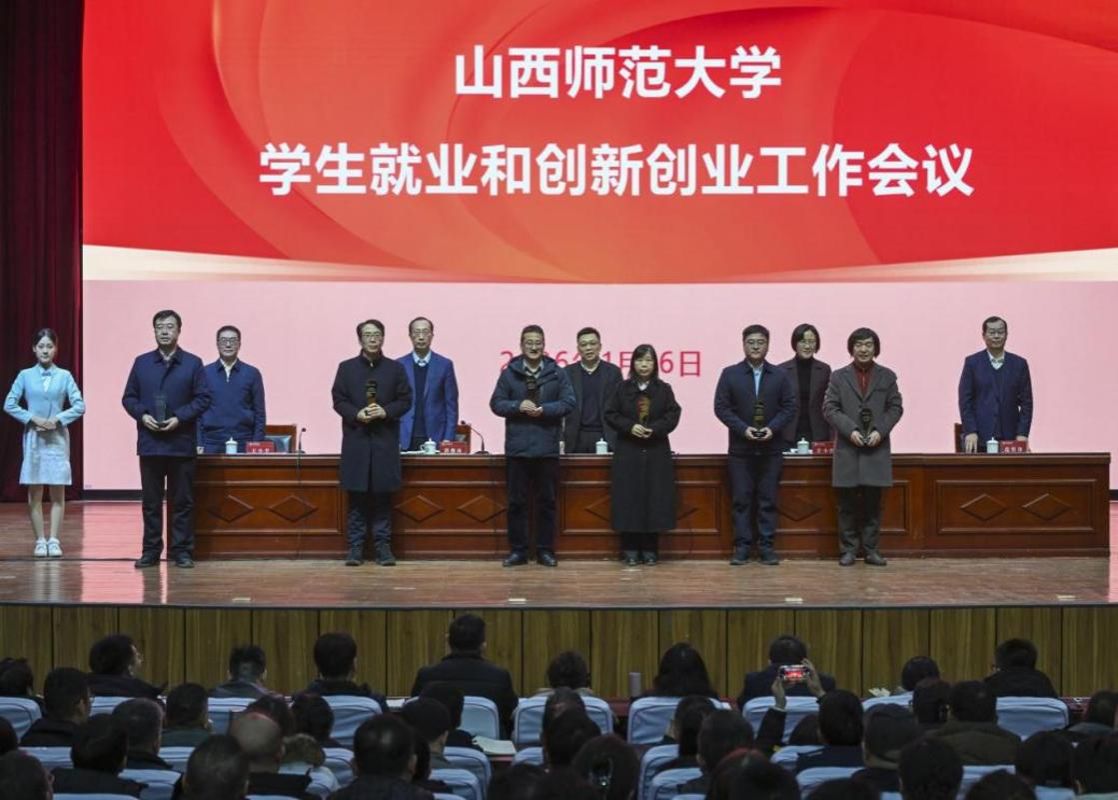 在全校学生就业与创新创业工作会议上,学院书记接过高质量人才培养工作先进学院奖杯,这是对全年就业率 90.5%、高质量就业率达68.8%、灵活就业率3.2%、国内外升学率达25.9%等成绩的充分肯定。同时,我院党委副书记李飞荣获2025年毕业生就业创业工作优秀个人奖,优秀校友岳掌印荣获2025年毕业生就业创业工作优秀个人奖。